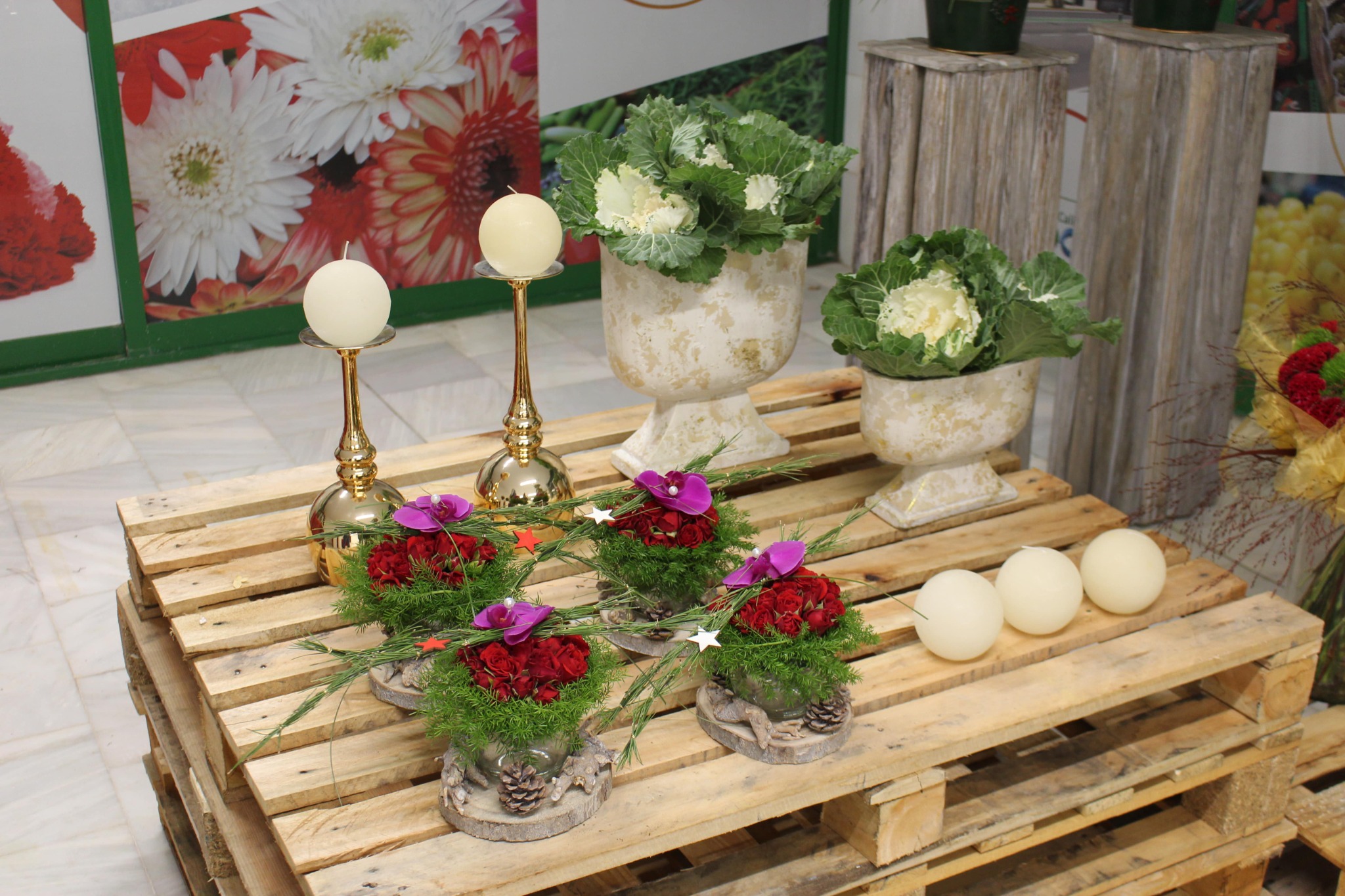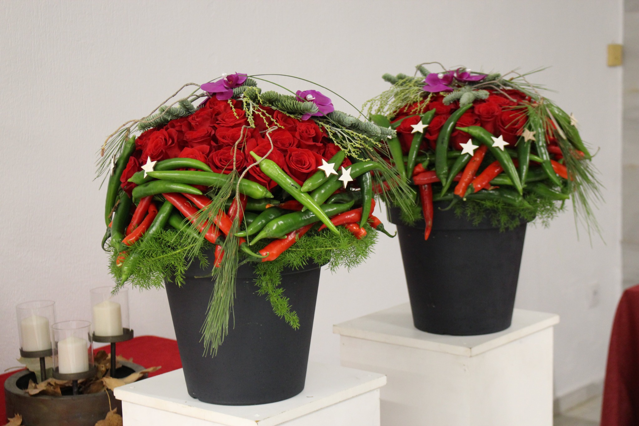 Una Navidad creativa, en clásicos rojo y verde, fue la propuesta de Juan Chamorro para la demostración floral de la XVI Jornada de Flores y Plantas en Navidad.